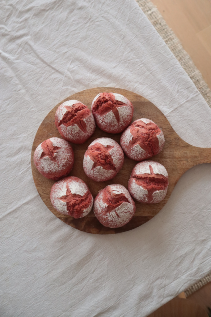 Den Teig für diese Brötchen kannst du entspannt am Vorabend vorbereiten und über Nacht im Kühlschrank ruhen lassen. Am nächsten Morgen kannst du dich auf frische, rosa Brötchen und einen unschlagbaren Duft freuen!