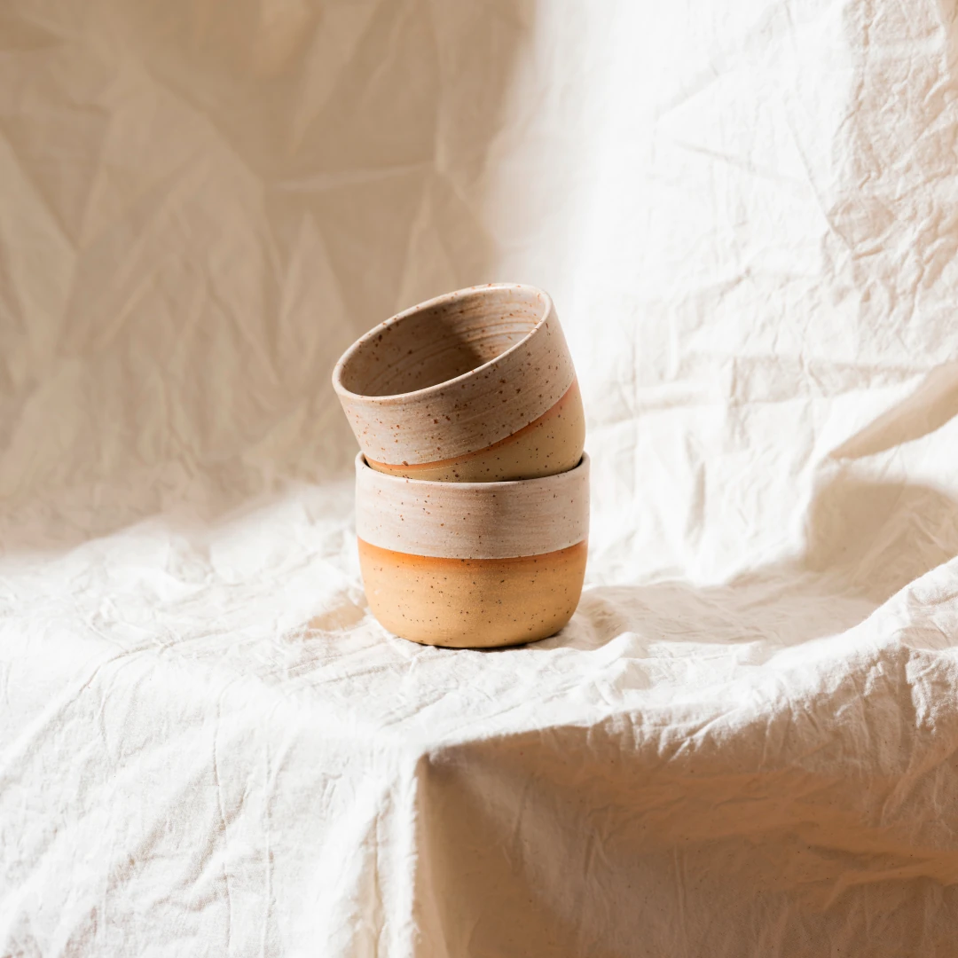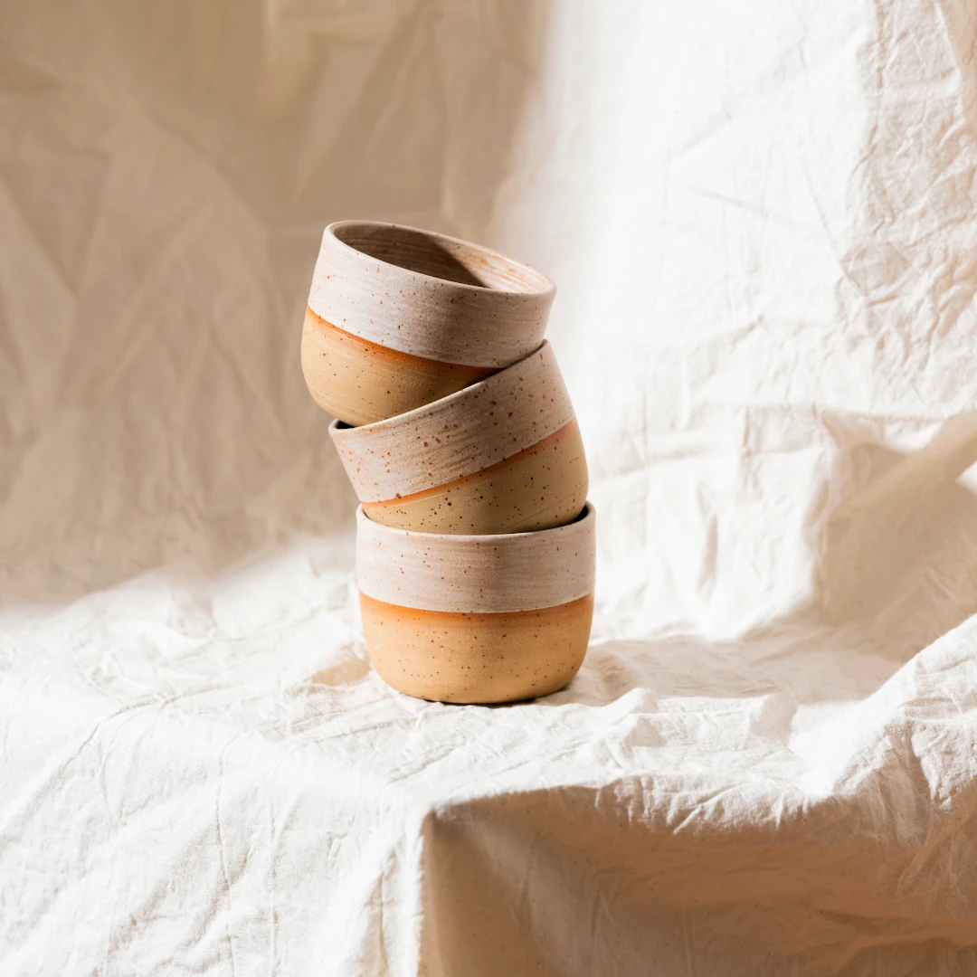 Jeder Becher wird von der Keramik-Künstlerin Elisabeth Pschaid in der Steiermark auf der Töpferscheibe von Hand gefertigt, gebrannt und glasiert. So entsteht ein echtes Unikat – mit kleinen, individuellen Nuancen, die jedes Stück einzigartig machen.